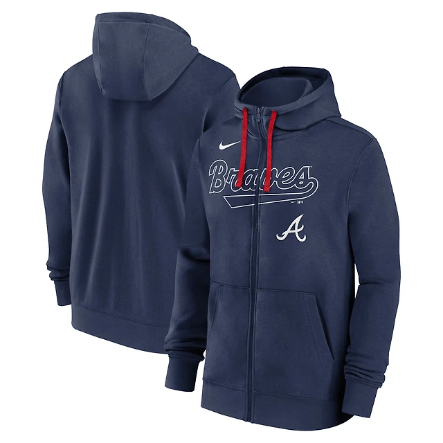 Sweat à capuche entièrement zippé Nike Atlanta Braves Knockout Script bleu marine pour homme