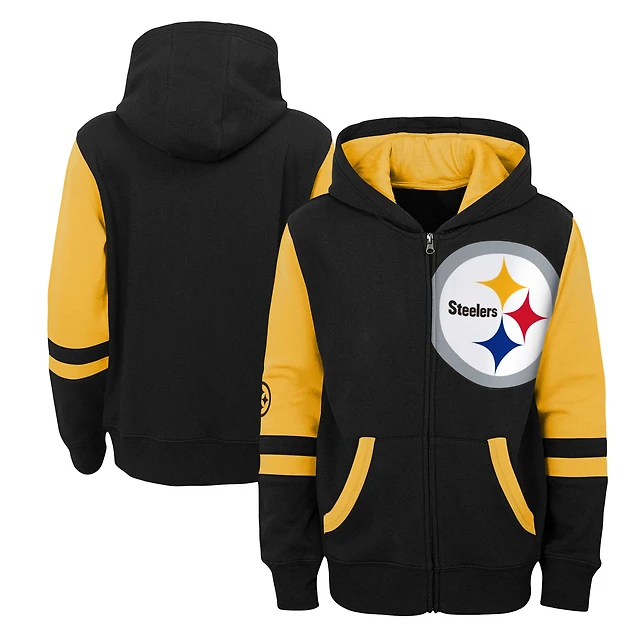 Sweat à capuche entièrement zippé noir Pittsburgh Steelers Stadium pour enfants d'âge préscolaire