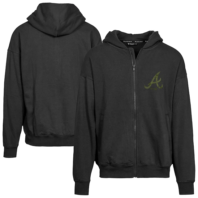 Sweat à capuche entièrement zippé surdimensionné motif camouflage numérique Atlanta Braves noir Levelwear pour homme
