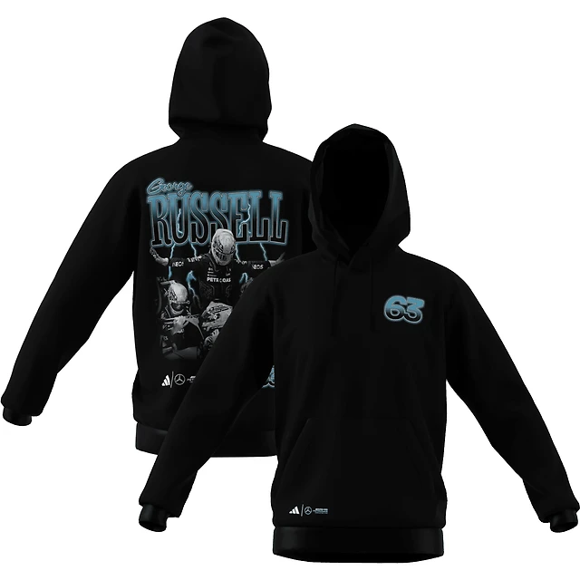 Sweat à capuche graphique noir pour homme, modèle pilote de l'équipe Mercedes-AMG Petronas F1, adidas George Russell
