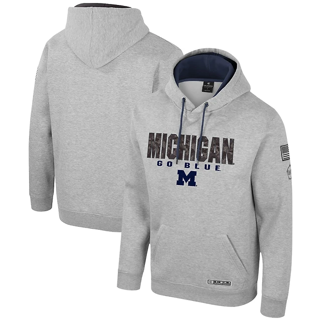 Sweat à capuche imprimé militaire Oorah OHT Michigan Wolverines pour homme, gris chiné, Colosseum