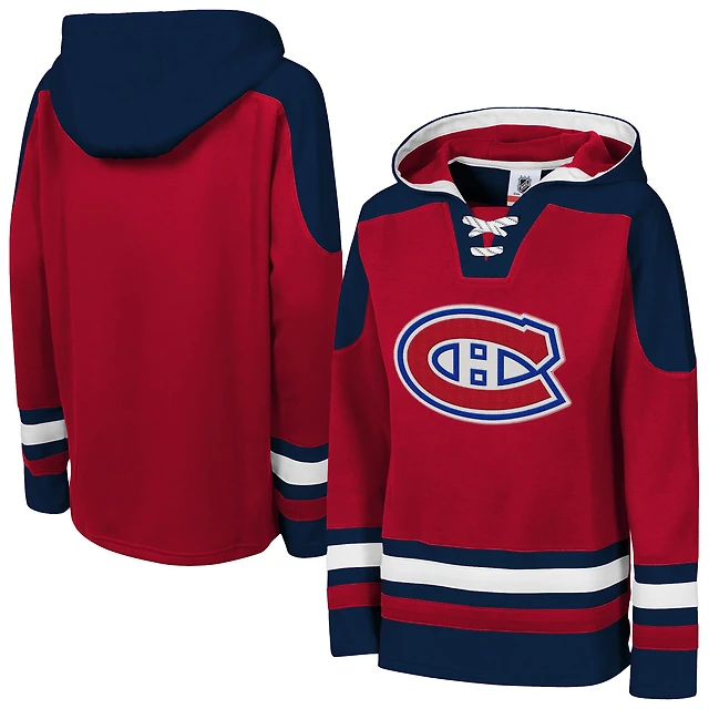 Sweat à capuche lacets et col en V intemporel des Canadiens de Montréal pour jeunes Outerstuff rouge