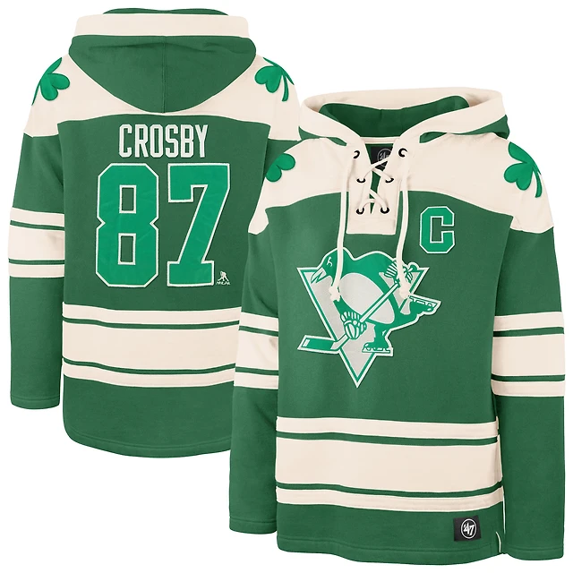 Sweat à capuche lacets pour homme '47 Sidney Crosby Kelly Green Pittsburgh Penguins St. Patrick's Day Player Name & Number