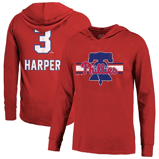 Sweat à capuche léger pour homme Majestic Threads Bryce Harper rouge des Philadelphia Phillies avec nom et numéro