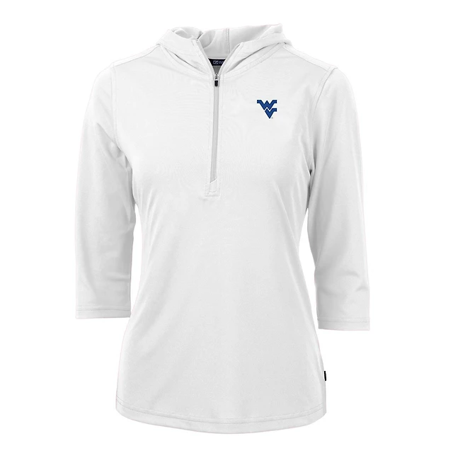 Sweat à capuche manches 3/4 et demi-zip pour femme, blanc, des West Virginia Mountaineers, en piqué écologique Virtue