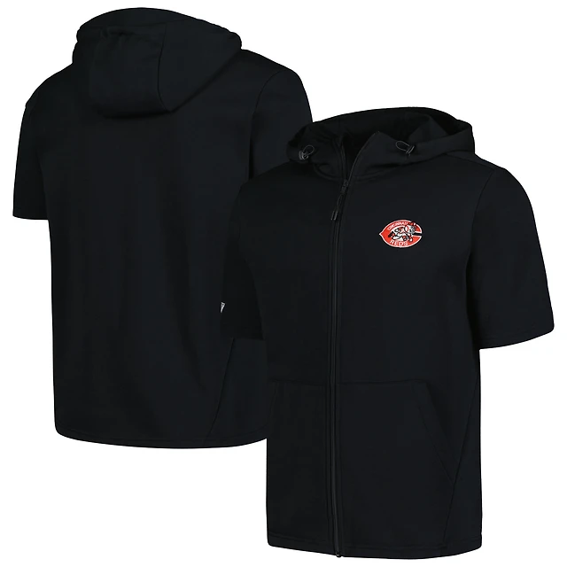 Sweat à capuche manches courtes et entièrement zippé Levelwear pour hommes, noir, Cincinnati Reds Recruit