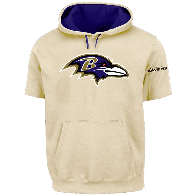 Sweat à capuche manches courtes pour homme avec imprimé et logo des Ravens de Baltimore, profil Oatmeal