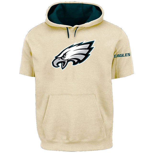 Sweat à capuche manches courtes pour homme avec imprimé et logo Philadelphia Eagles, grande taille profil Oatmeal