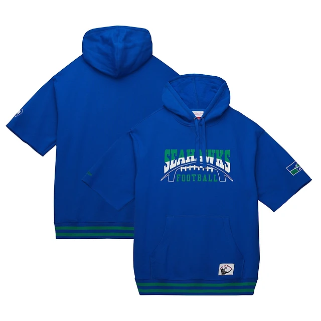 Sweat à capuche manches courtes pour hommes Mitchell & Ness Royal Seattle Seahawks d'avant-match