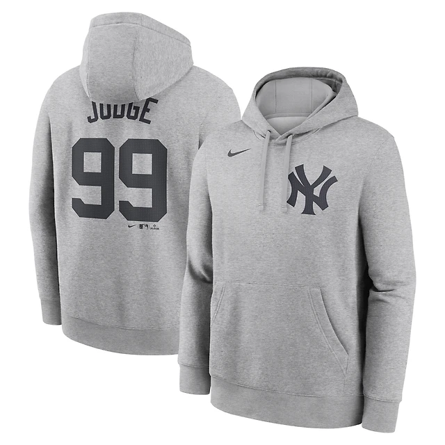 Sweat à capuche Nike Aaron Judge Heather Grey pour homme, avec nom et numéro du joueur des Yankees de New York