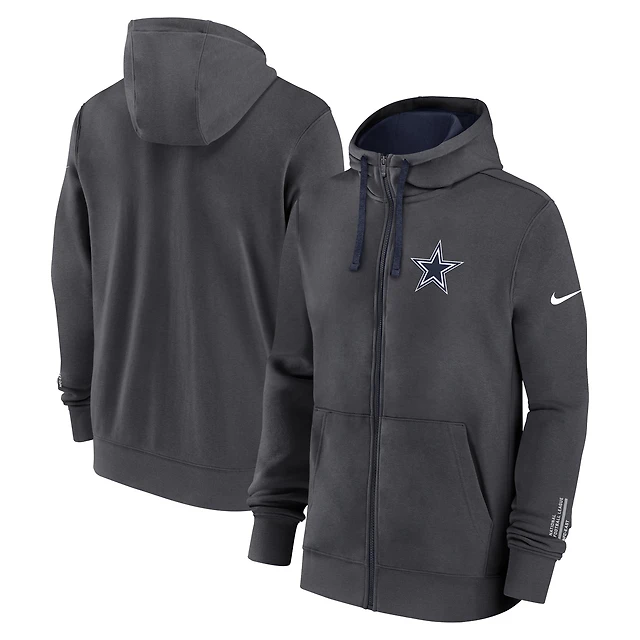Sweat à capuche Nike anthracite Dallas Cowboys Primetime Club entièrement zippé pour homme