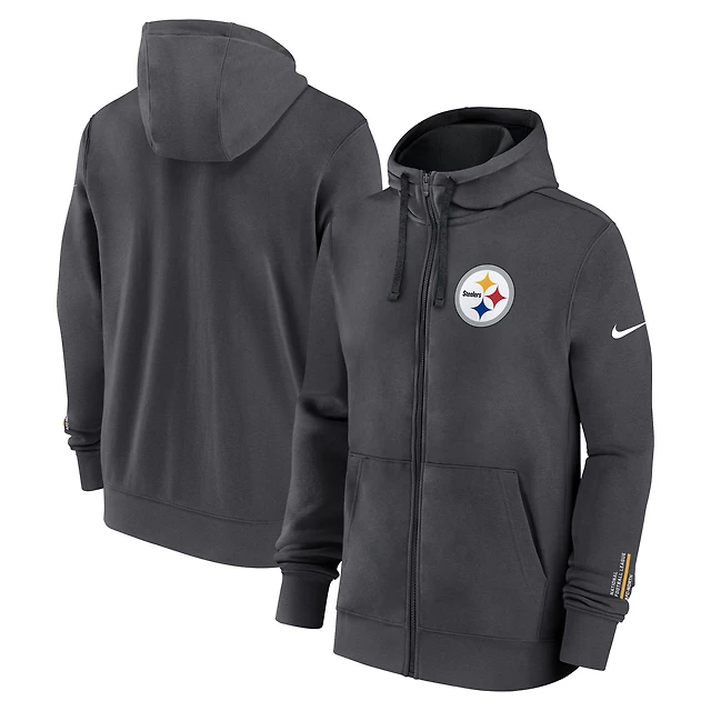 Sweat à capuche Nike anthracite Pittsburgh Steelers Primetime Club entièrement zippé pour homme