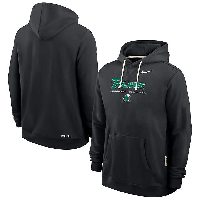 Sweat à capuche Nike Dri-FIT noir Tulane Green Wave 2025 Sideline Standard Issue pour homme