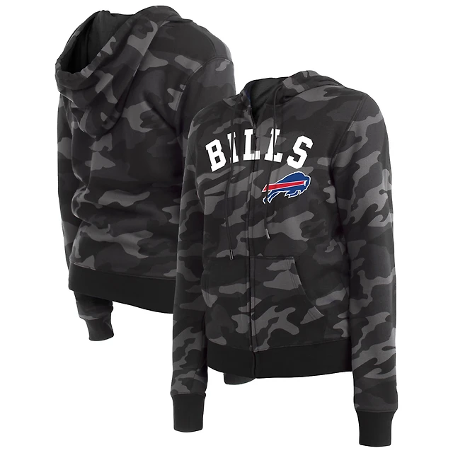 Sweat à capuche noir camouflage Buffalo Bills New Era pour femme