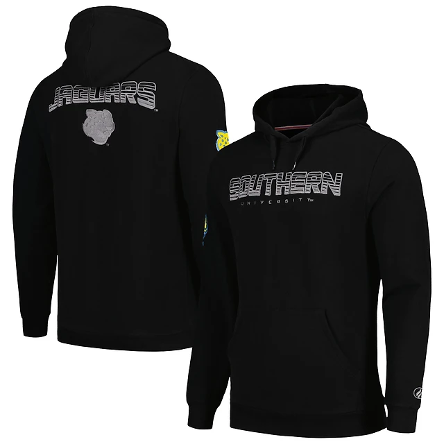 Sweat à capuche noir FISLL Southern University Jaguars Puff Print Sliced pour hommes