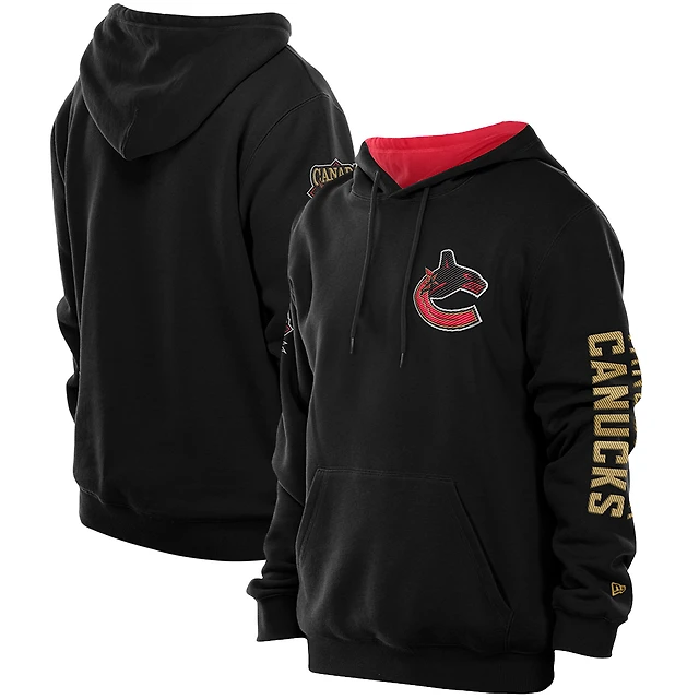 Sweat à capuche noir New Era pour homme, motif Canada Day, Vancouver Canucks