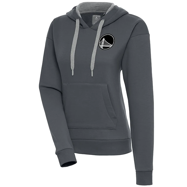 Sweat à capuche pour femme Antigua Charcoal Golden State Warriors, motif Victory métallisé brossé