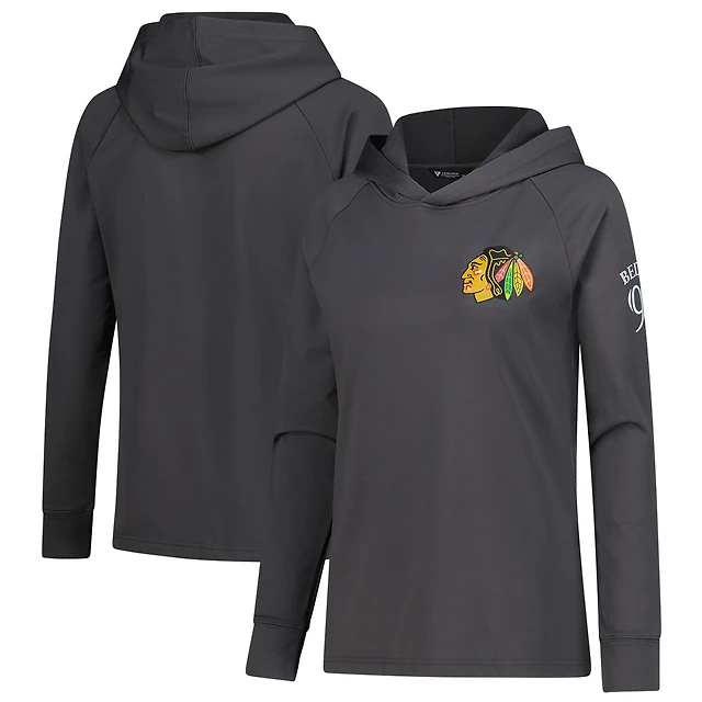 Sweat à capuche raglan Connor Bedard pour femme, couleur charbon, avec nom et numéro des Blackhawks de Chicago
