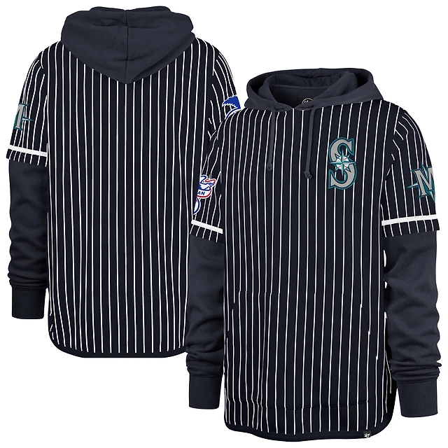 Sweat à capuche rayures bleu marine « 47 » pour homme, motif double en-tête des Seattle Mariners