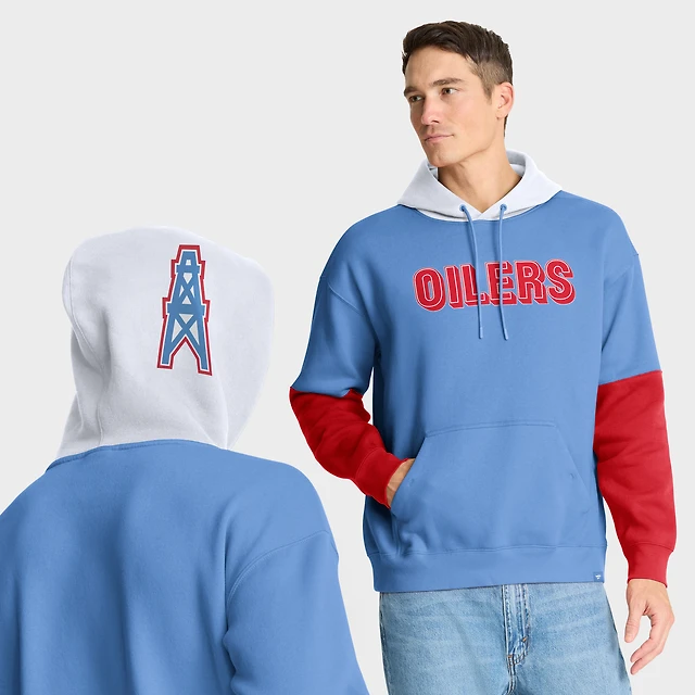 Sweat à capuche rétro bleu clair pour homme Fanatics avec casque des Titans du Tennessee