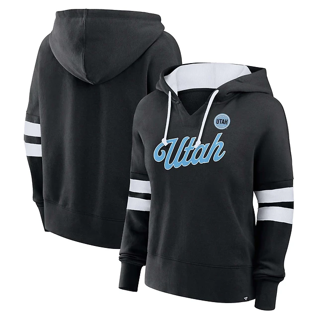 Sweat à capuche surdimensionné col en V pour femme Fanatics Black Utah Mammoth