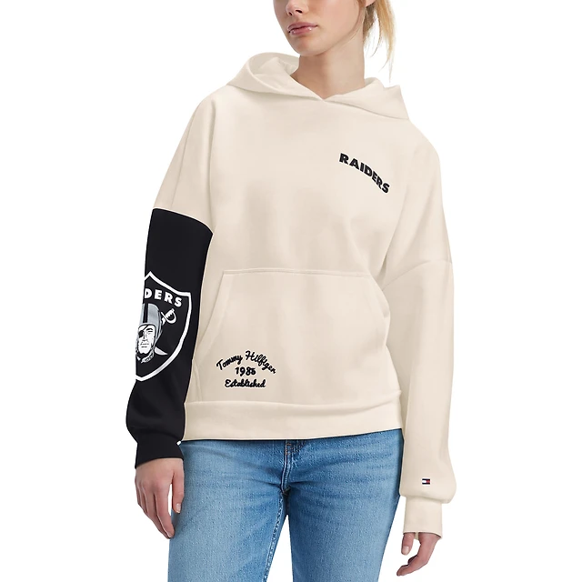 Sweat à capuche Tommy Hilfiger crème/noir Las Vegas Raiders Harriet pour femmes
