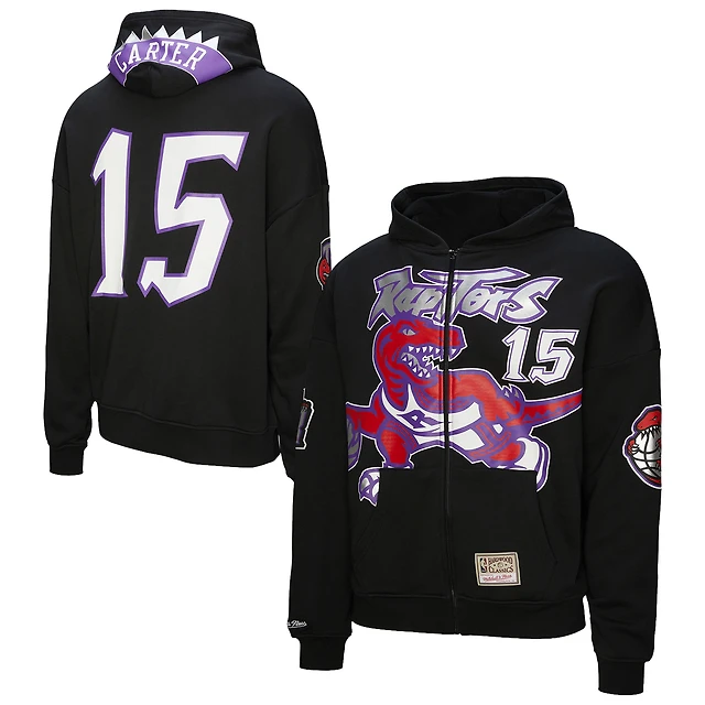 Sweat à capuche unisexe Mitchell & Ness Vince Carter noir Toronto Raptors Maxxed Out entièrement zippé