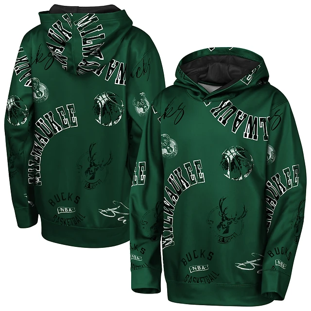 Sweat à capuche vert chasseur pour jeunes Milwaukee Bucks, motif infraction au code de la route