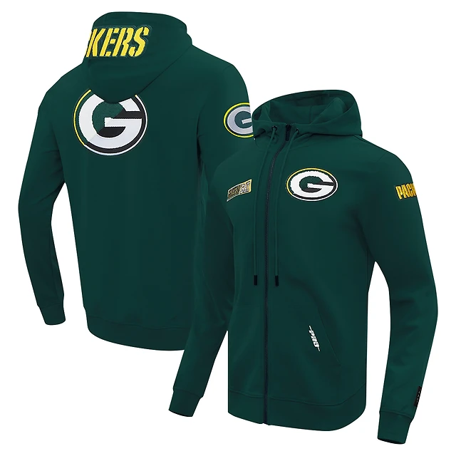 Sweat à capuche zippé en tricot double avec logo fendu Pro Standard Green Bay Packers pour homme
