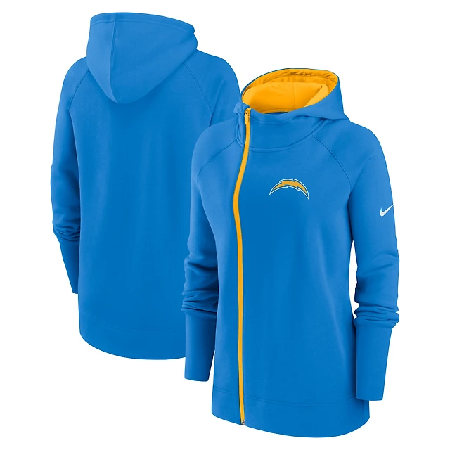 Sweat à capuche zippé et raglan asymétrique Los Angeles Chargers Nike bleu poudré pour femme