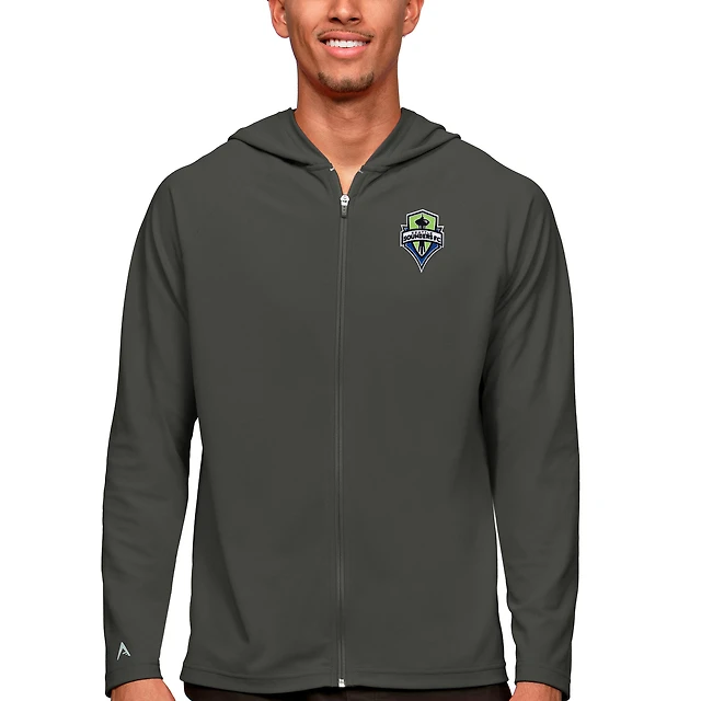 Sweat à capuche zippé intégral pour homme, couleur charbon Antigua, logo de l'équipe principale des Seattle Sounders FC