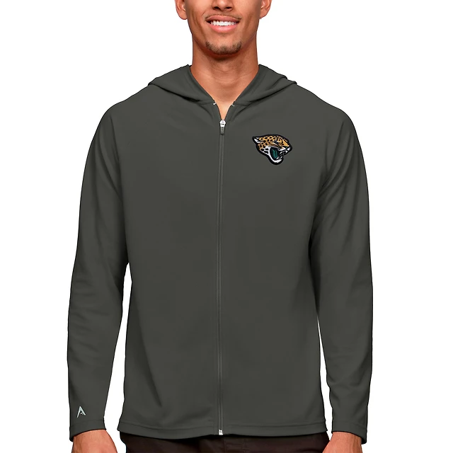 Sweat à capuche zippé intégral pour homme, logo Legacy des Jaguars de Jacksonville, couleur charbon Antigua