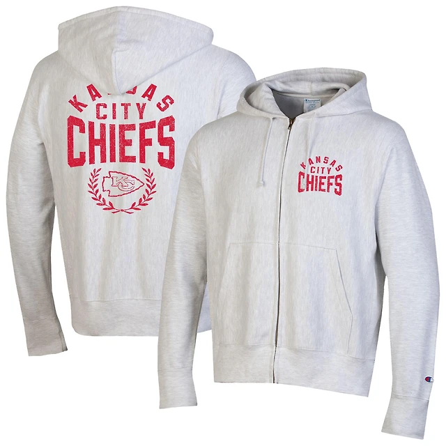 Sweat à capuche zippé intégral tissage inversé Champion Heather Gray des Kansas City Chiefs pour homme