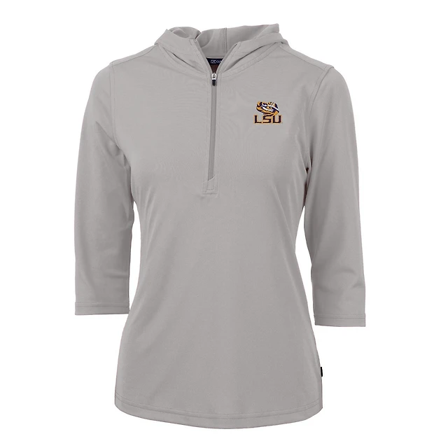 Sweat à capuche zippé manches 3/4 et demi-zip pour femme, gris, Cutter & Buck, LSU Tigers, Virtue Eco Pique
