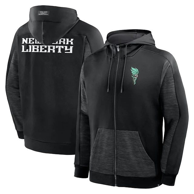 Sweat à capuche zippé noir New York Liberty Back Door Cut Play Defender pour homme