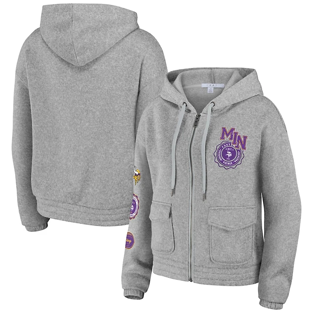 Sweat à capuche zippé pour femme WEAR by Erin Andrews Heather Grey Minnesota Vikings