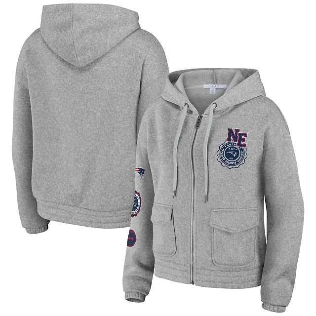 Sweat à capuche zippé pour femme WEAR by Erin Andrews Heather Grey New England Patriots