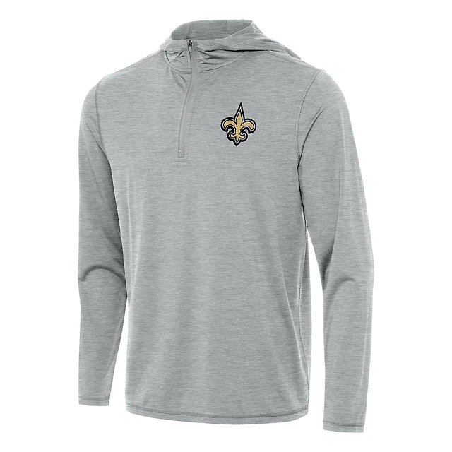 Sweat à capuche zippé quart de zip Antigua Heather Grey New Orleans Saints pour homme