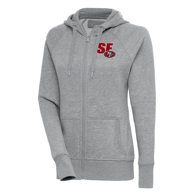 Sweat à capuche zippé Victory Antigua Heather Grey pour femme des San Francisco 49ers