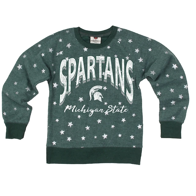Sweat-shirt à capuche étoiles scintillantes pour jeunes filles Wes et Willy Green des Spartans de l'État du Michigan