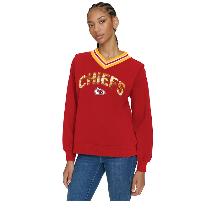Sweat-shirt à col en V rouge Alice des Kansas City Chiefs de Tommy Hilfiger pour femme