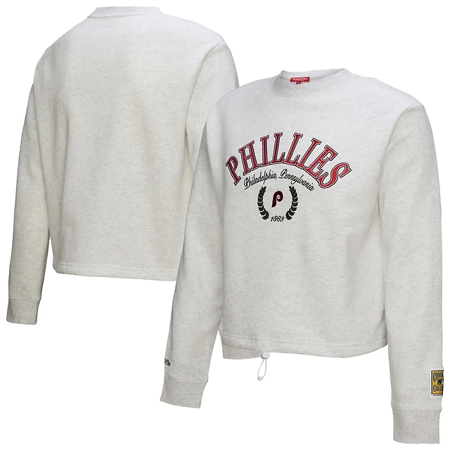 Sweat-shirt court à capuche Mitchell & Ness gris chiné pour femme, motif Philadelphia Phillies