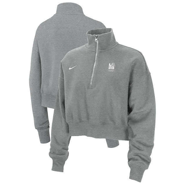 Sweat-shirt court surdimensionné en polaire à demi-zip Nike gris chiné LA28 pour femme, Jeux olympiques d'été Phoenix