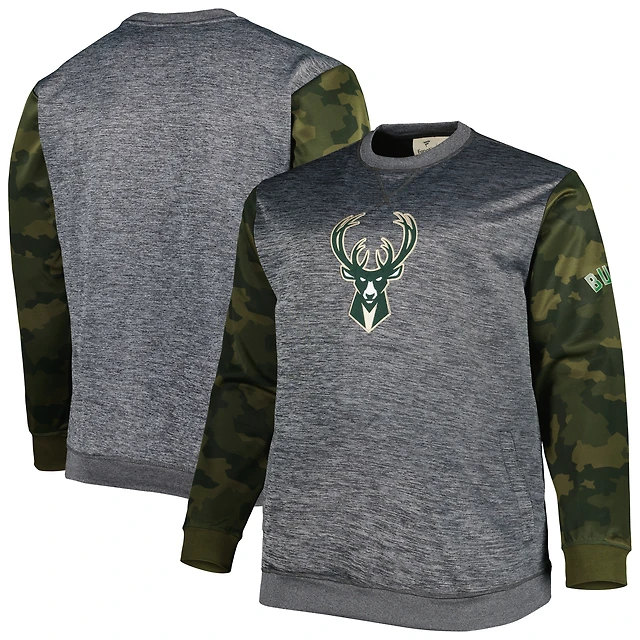 Sweat-shirt cousu camouflage Fanatics Heather Charcoal Milwaukee Bucks Big & Tall pour hommes