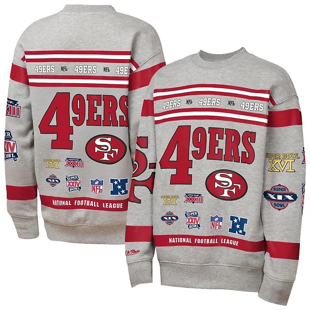 Sweat-shirt en polaire gris à imprimé intégral Mitchell & Ness pour jeunes des San Francisco 49ers
