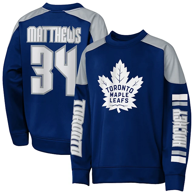 Sweat-shirt ras du cou bleu Auston Matthews des Maple Leafs de Toronto pour jeunes