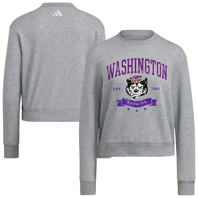 Sweat-shirt ras du cou gris adidas Washington Huskies pour femme