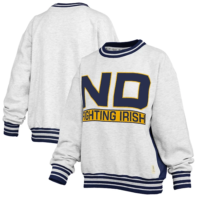 Sweat-shirt ras du cou gris chiné/bleu marine pour femme de la collection Pressbox des Fighting Irish Notre Dame