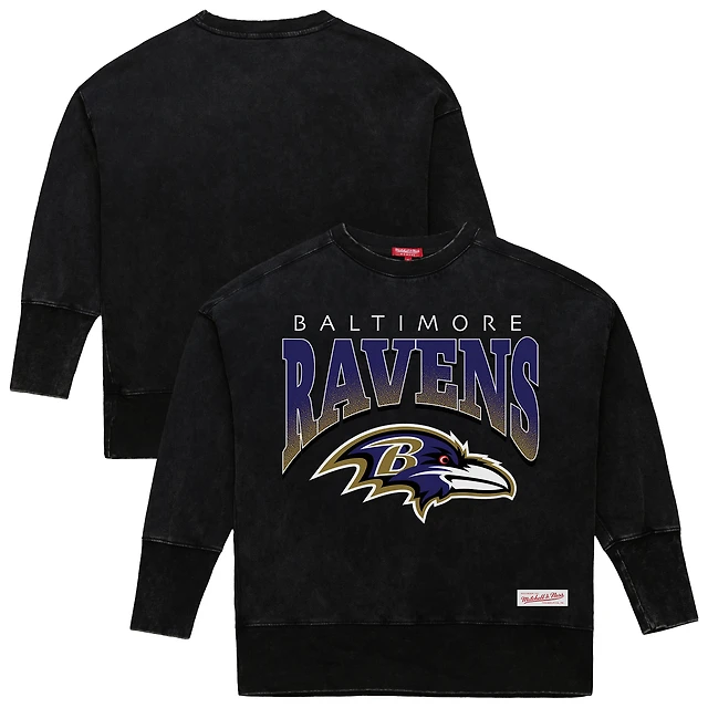 Sweat-shirt ras du cou noir délavé minéral Delineate de Mitchell & Ness pour femme, motif Baltimore Ravens
