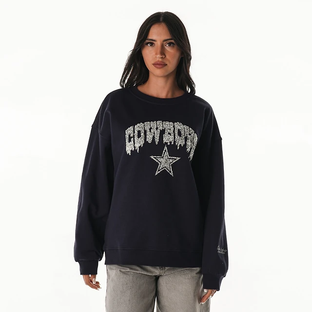 Sweat-shirt ras du cou surdimensionné bleu marine Dallas Cowboys Rock Crystal pour femme de The Wild Collective